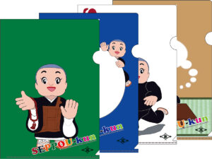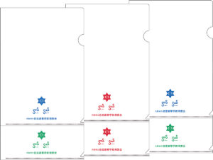 同窓会オリジナルグッズとして制作 ・新入学生への記念品(白帯の3点セット) ・同窓会グッズとして販売(白帯の3点セット) ・イベント時の資料配布用に使用(赤、緑、青帯の3点)