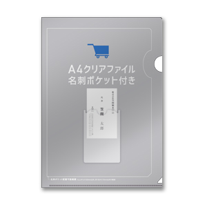 タテ型名刺を収納できるポケット付きのクリアファイルがオリジナルで作成可能です。