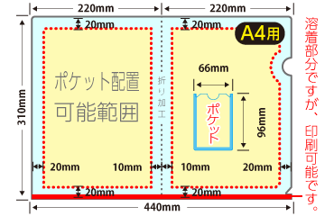 名刺ポケットのサイズ、厚さは固定となり名刺ポケットへの印刷はできません。